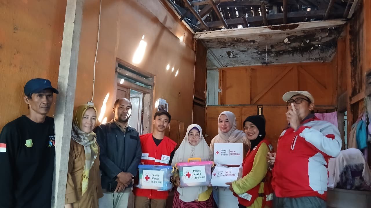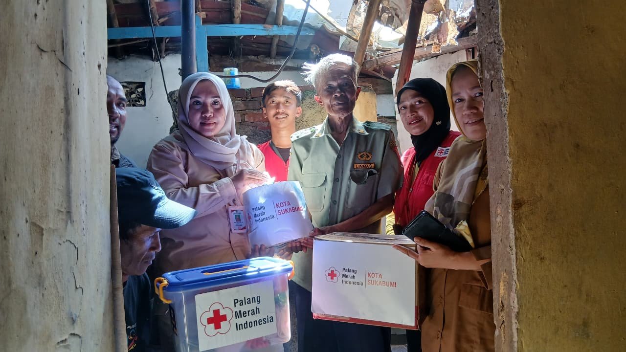 Palang Merah Indonesia (PMI) Kota Sukabumi hadir langsung ke lokasi untuk mendistribusikan bantuan kemanusiaan bagi warga yang rumahnya mengalami kerusakan akibat musibah. Bantuan berupa hygiene kits, mi instan, dan beras diserahkan sebagai upaya meringankan beban kebutuhan dasar warga yang terdampak.