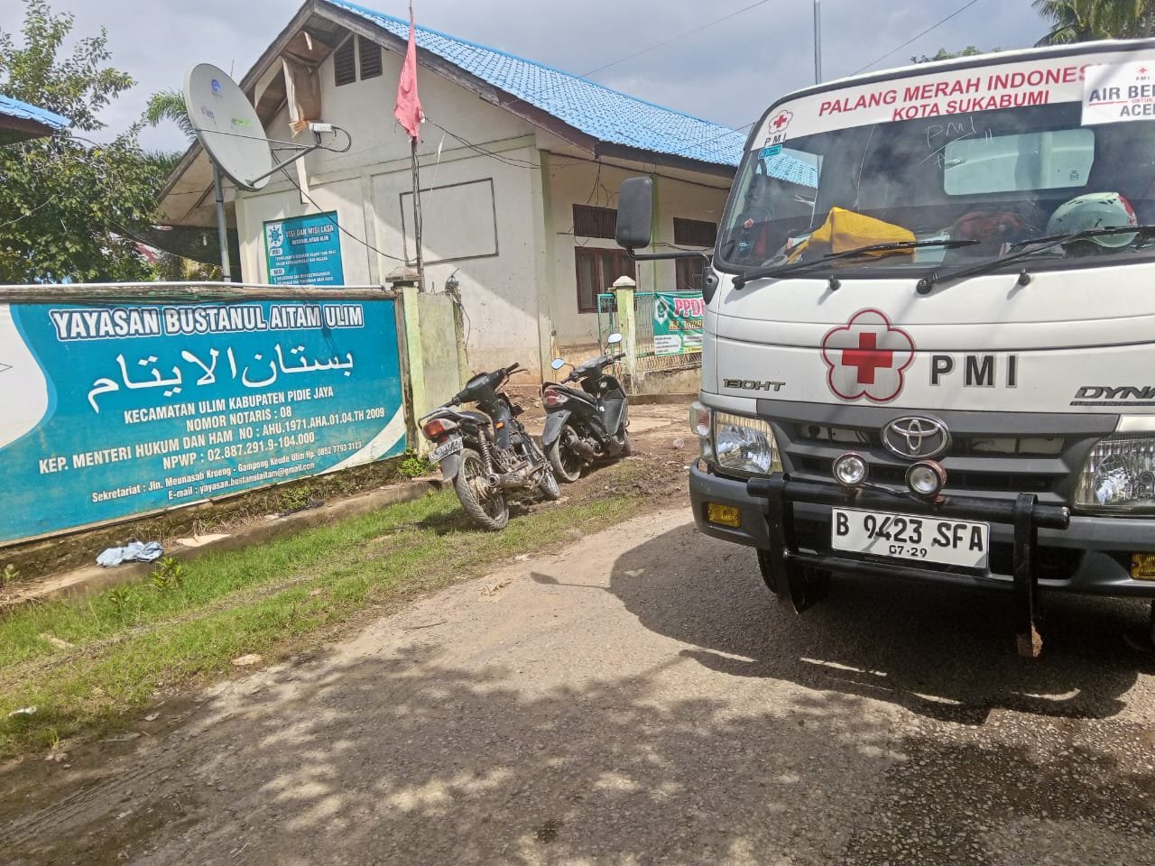 Salah satu titik penerima manfaat adalah Panti Asuhan Yatim Piatu Yayasan Bustanul Aitam Ulim. Mobil tangki PMI tampak bersandar di halaman panti, membawa pasokan air yang sangat dibutuhkan untuk menunjang kehidupan sehari-hari anak-anak yatim piatu.