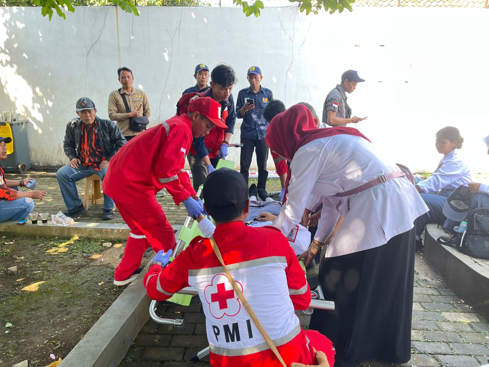 Tim Palang Merah Indonesia (PMI) Kota Sukabumi yang sejak awal disiagakan langsung memberikan pertolongan pertama. Relawan dengan sigap mengevakuasi peserta menggunakan tandu, memeriksa kondisi, serta memberikan penanganan medis di lokasi.