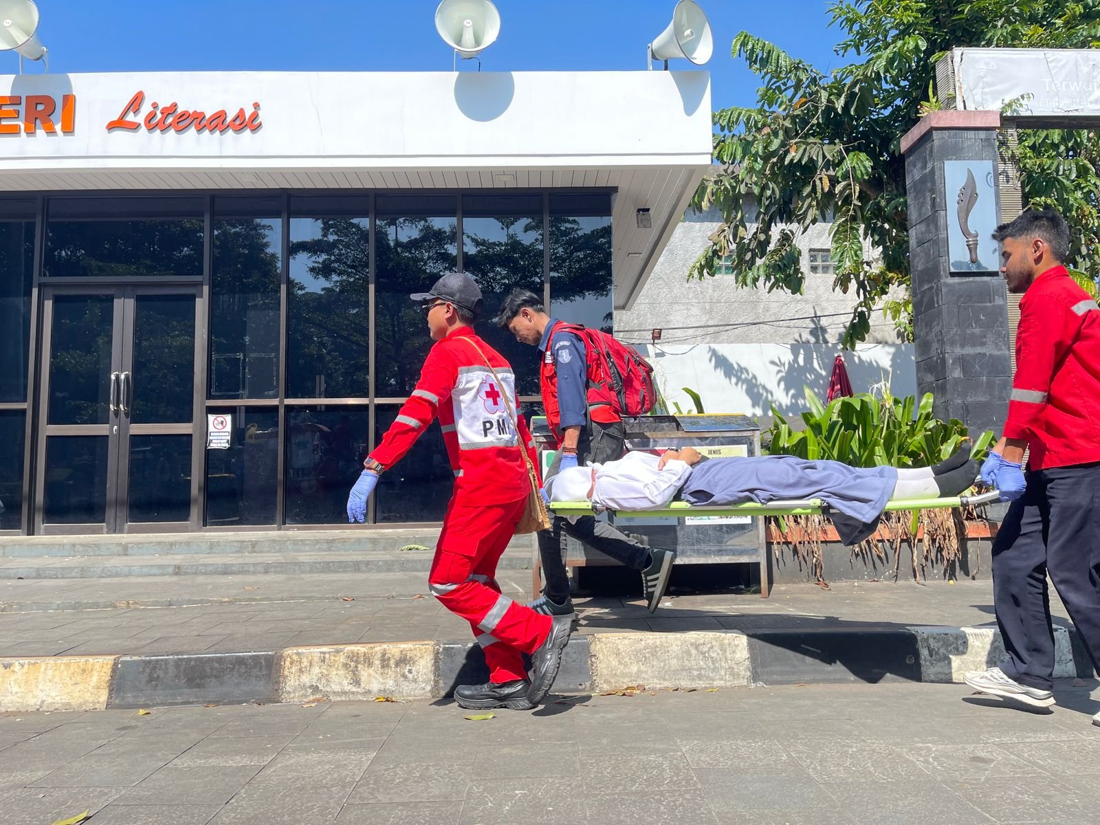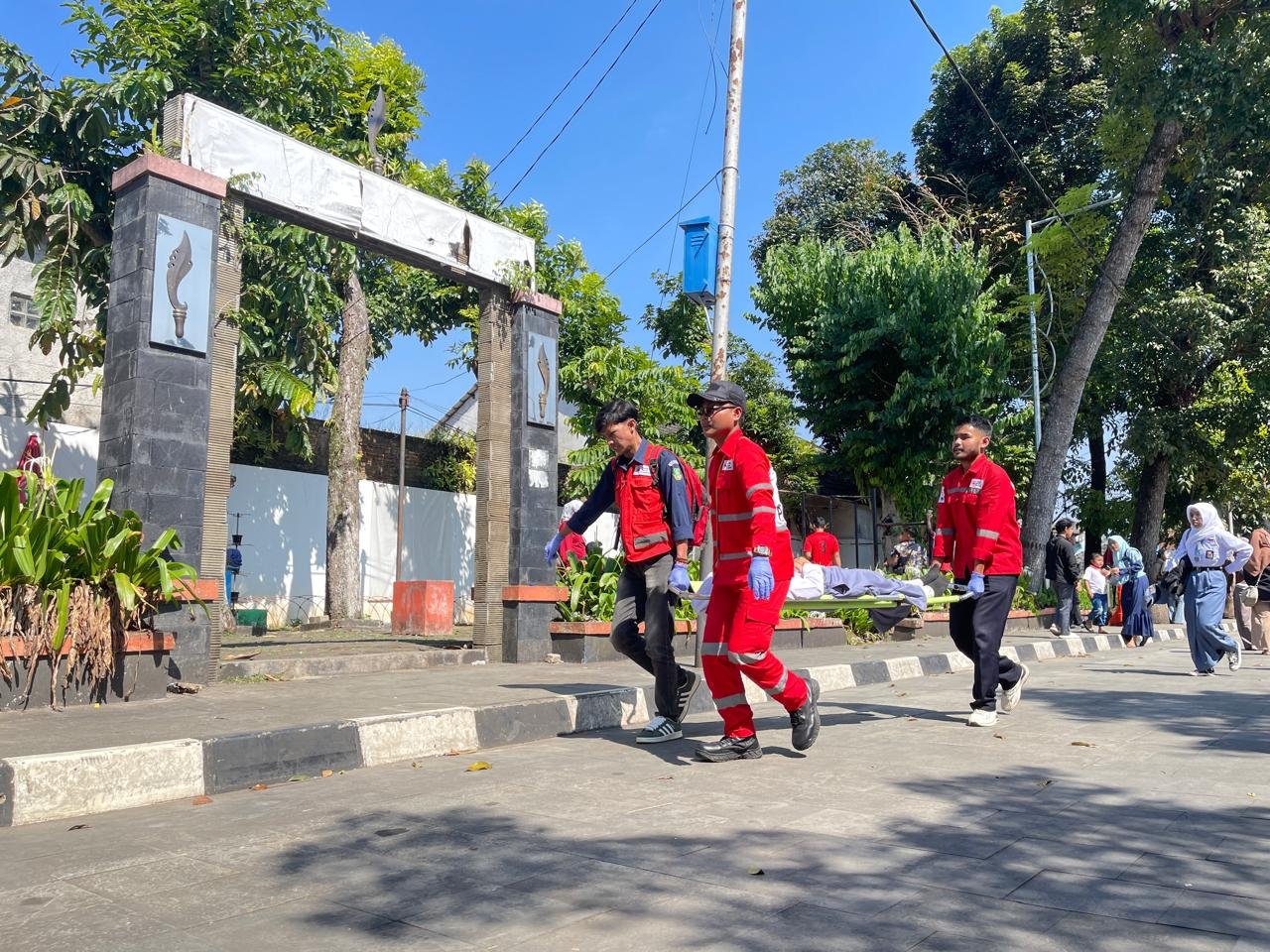Tim Palang Merah Indonesia (PMI) Kota Sukabumi yang sejak awal disiagakan langsung memberikan pertolongan pertama. Relawan dengan sigap mengevakuasi peserta menggunakan tandu, memeriksa kondisi, serta memberikan penanganan medis di lokasi.