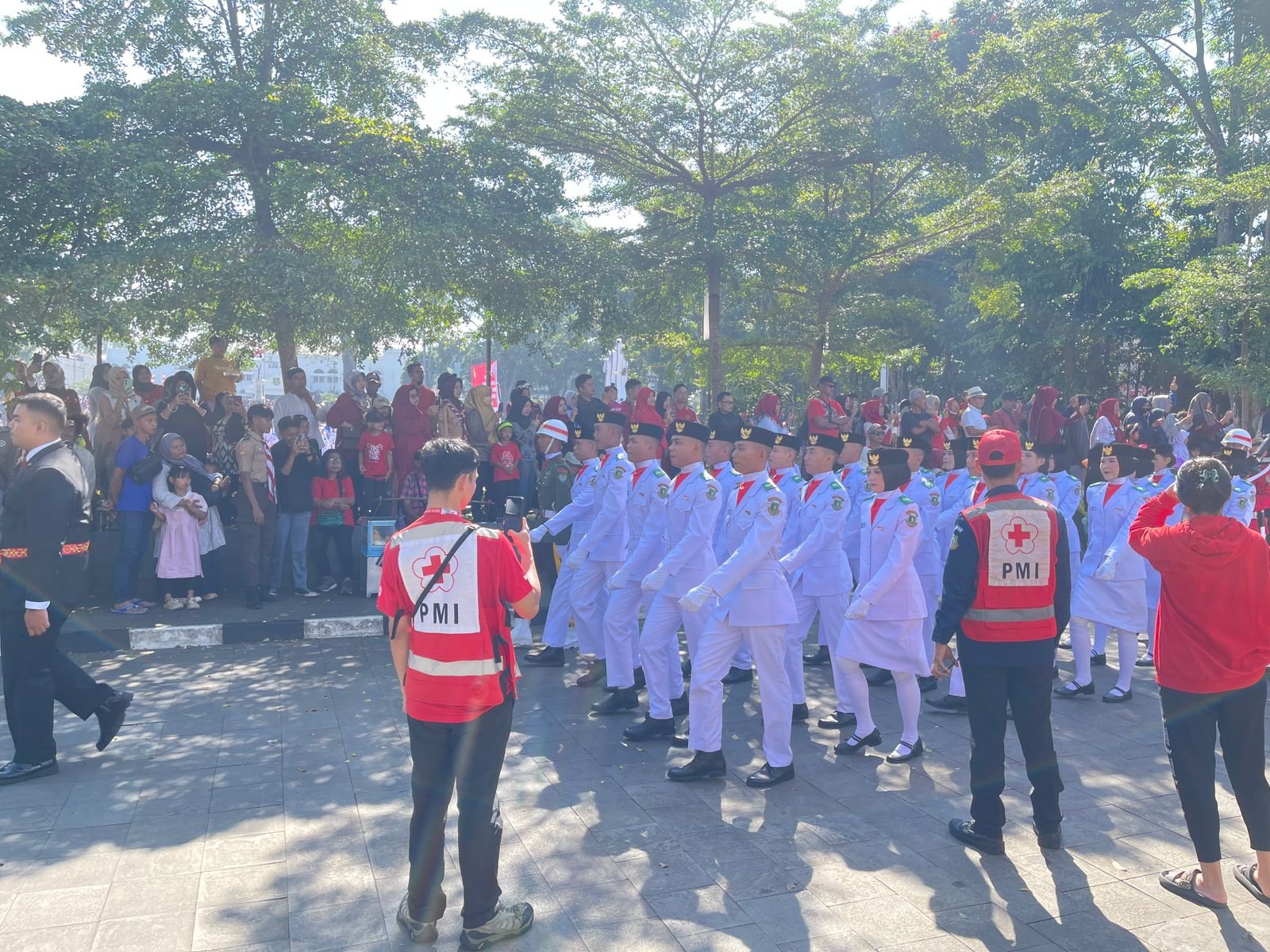 “Kami menurunkan tim gabungan relawan untuk memastikan kesiapsiagaan selama upacara. Alhamdulillah, semua peserta yang mengalami gangguan kesehatan bisa segera ditangani dan diberikan tindakan pertolongan Pertama,” ujarnya.