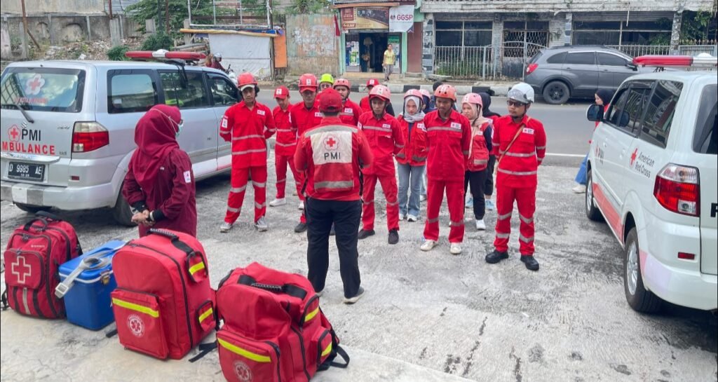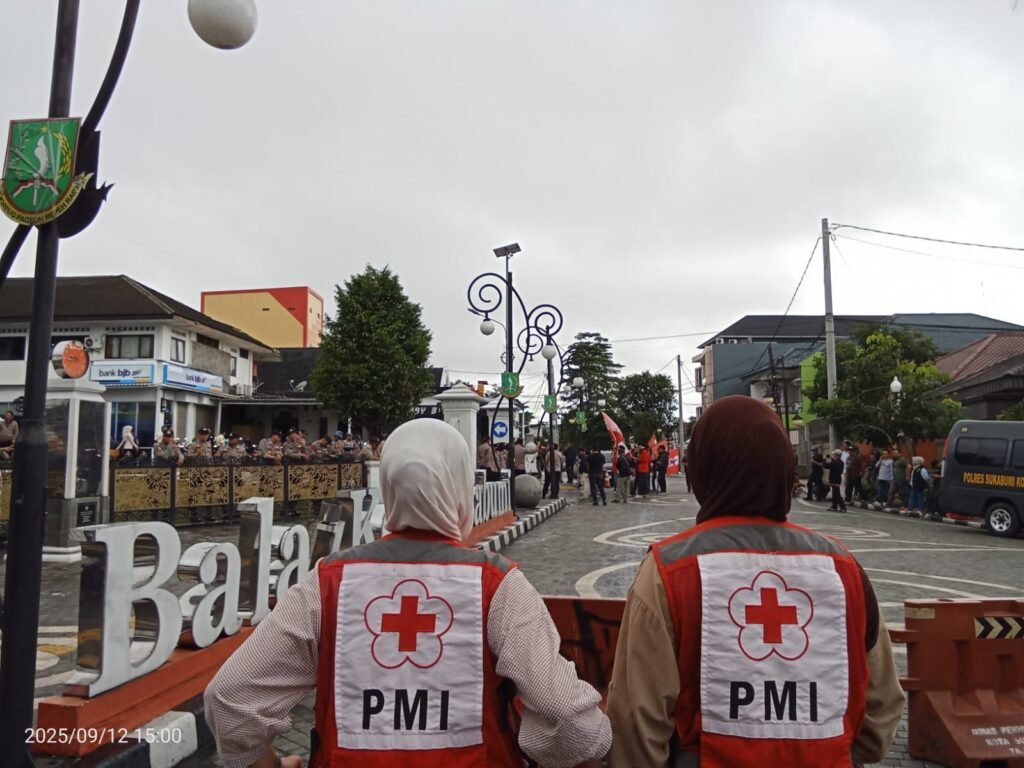KOTA SUKABUMI – Palang Merah Indonesia (PMI) Kota Sukabumi menurunkan relawan PMI dan menyiagakan satu unit ambulans dalam kegiatan Aksi
