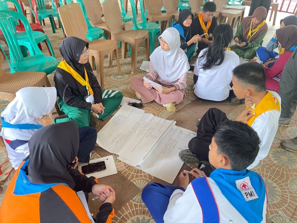 Materi ASINCAN ini mengajarkan peserta untuk mengenali potensi bahaya di sekitar lingkungan, memahami langkah-langkah penyelamatan diri, serta memperkuat keterampilan mitigasi sederhana yang bisa dilakukan remaja. Dengan pendekatan interaktif, anak-anak PMR diajak berdiskusi dalam beberapa kelompok kecil untuk menggali pengalaman, menyusun strategi kesiapsiagaan, dan mempresentasikan ide-ide kreatif mereka.
