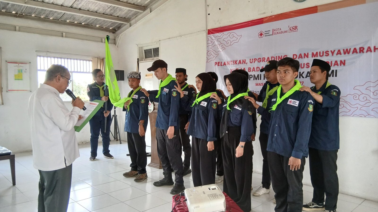 KOTA SUKABUMI– Ketua PMI Kota Sukabumi H. Suranto Sumowiryo didampingi Sekretaris PMI Kota Sukabumi Heri Saeful Bahri dan Ketua Bidang SDM dan Relawan PMI Kota Sukabumi Dessy Rachmawati secara resmi melantik Badan Pengurus Harian (BPH) Korps Sukarela (KSR) PMI Unit Markas Kota Sukabumi periode 2025-2027 di Aula Markas PMI Kota Sukabumi, Jl Arif Rahman Hakim, minggu (18/5)