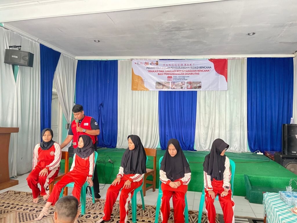 KOTA SUKABUMI – Dalam rangka memperingati Bulan Pengurangan Risiko Bencana (PRB), Palang Merah Indonesia (PMI) Kota Sukabumi menyelenggarakan kegiatan edukasi dan simulasi kesiapsiagaan bencana bagi penyandang disabilitas di SLB Budi Nurani, Rabu (1/10/2025).
