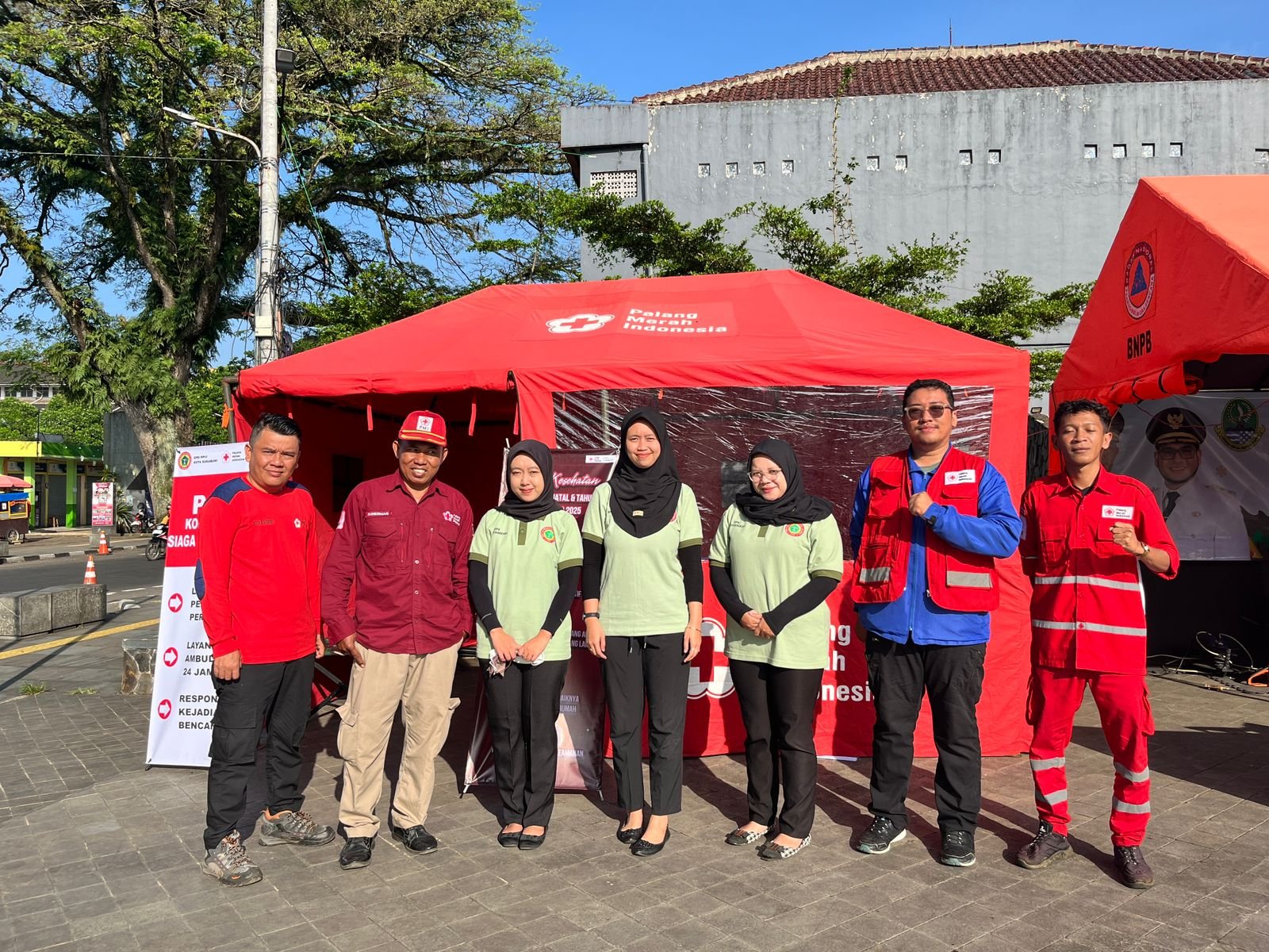 Relawan PMI bersama perawat dari DPD PPNI disiagakan secara bergantian selama 24 jam. Mereka dilengkapi dengan perlengkapan medis, tas pertolongan pertama, serta dukungan ambulans untuk menunjang pelayanan di lapangan.