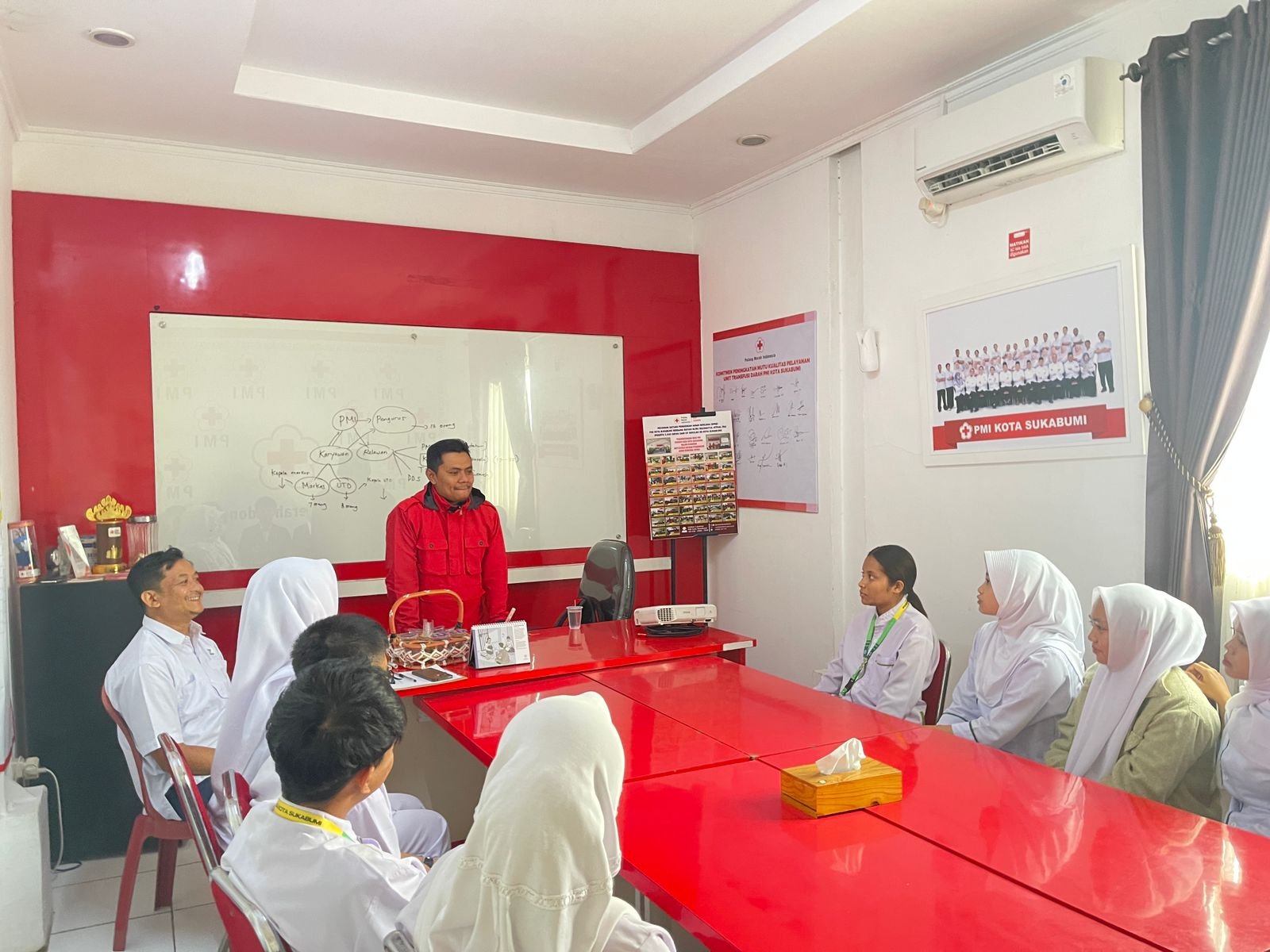 Selain itu, turut hadir memberikan orientasi Aim Abdul Halim, Kepala Seksi Kepegawaian dan Umum UDD PMI Kota Sukabumi, yang menjelaskan tata kerja serta prosedur di Unit Donor Darah. Materi yang disampaikan mencakup kedisiplinan, tanggung jawab, etika pelayanan, dan koordinasi antarbagian dalam mendukung pelayanan donor darah.