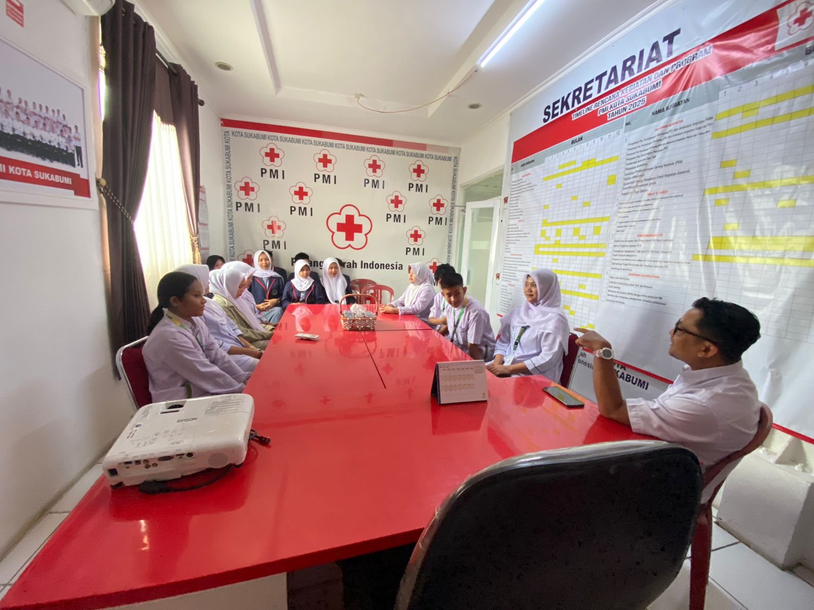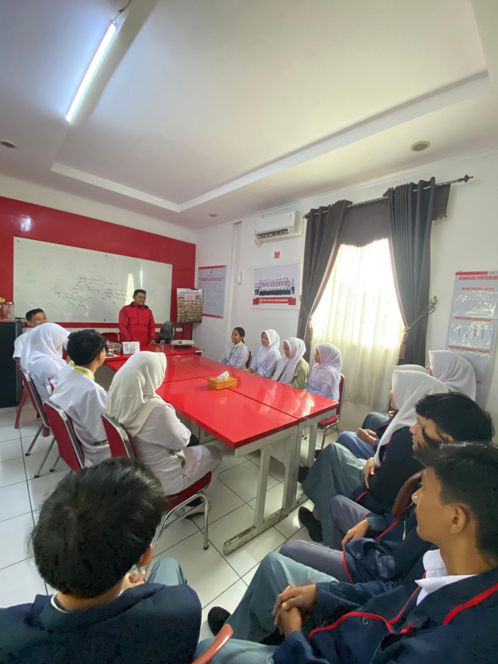 Pembekalan yang berlangsung di ruang pertemuan Markas PMI ini menghadirkan Wakil Sekretaris PMI Kota Sukabumi, Asep Jafarudin, sebagai narasumber. Peserta berasal dari SMK Ganesa, SMKN 2 Kota Sukabumi, SMK Persada, SMK Ulul Albab, dan SMK Al Mijab.