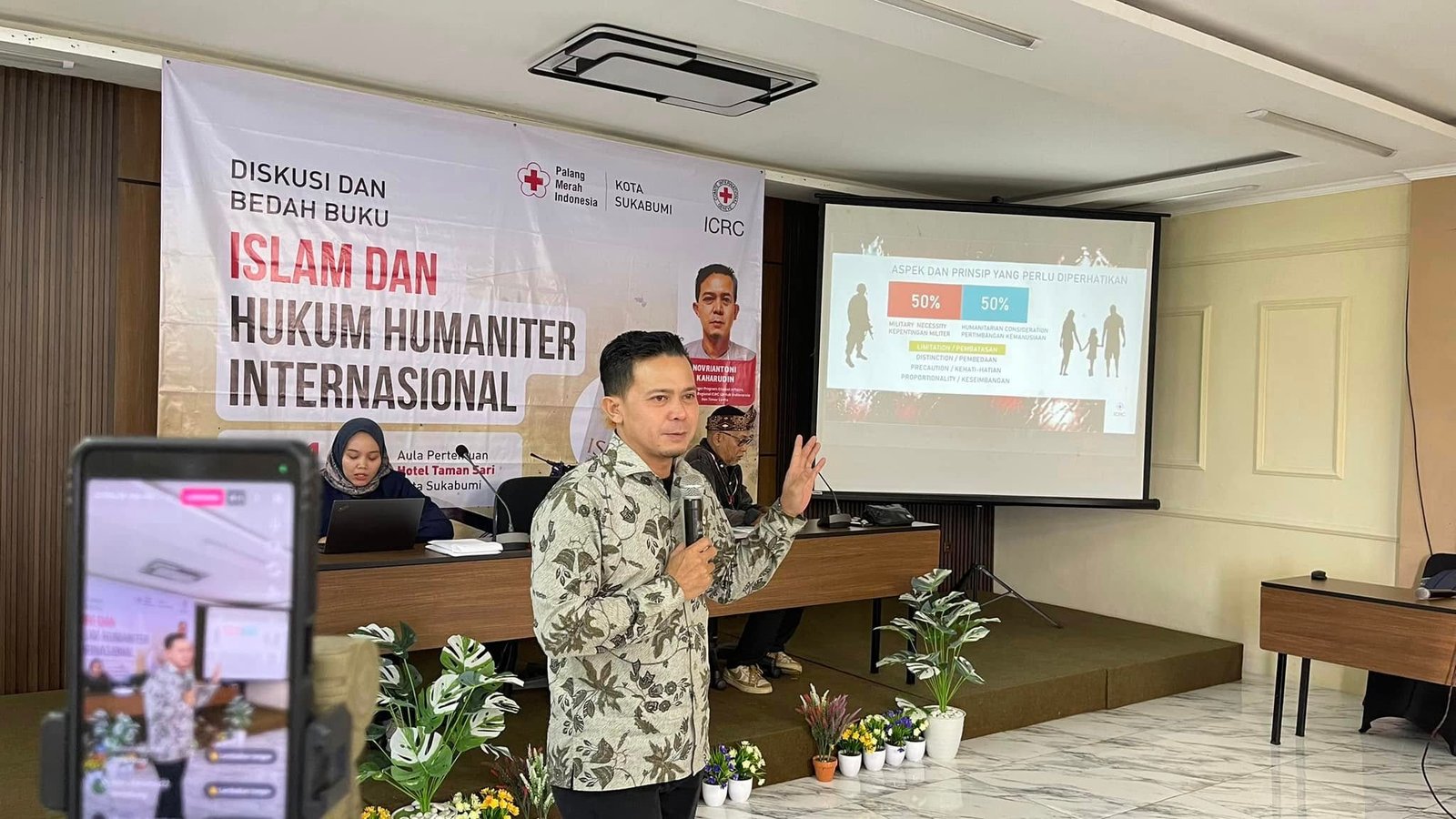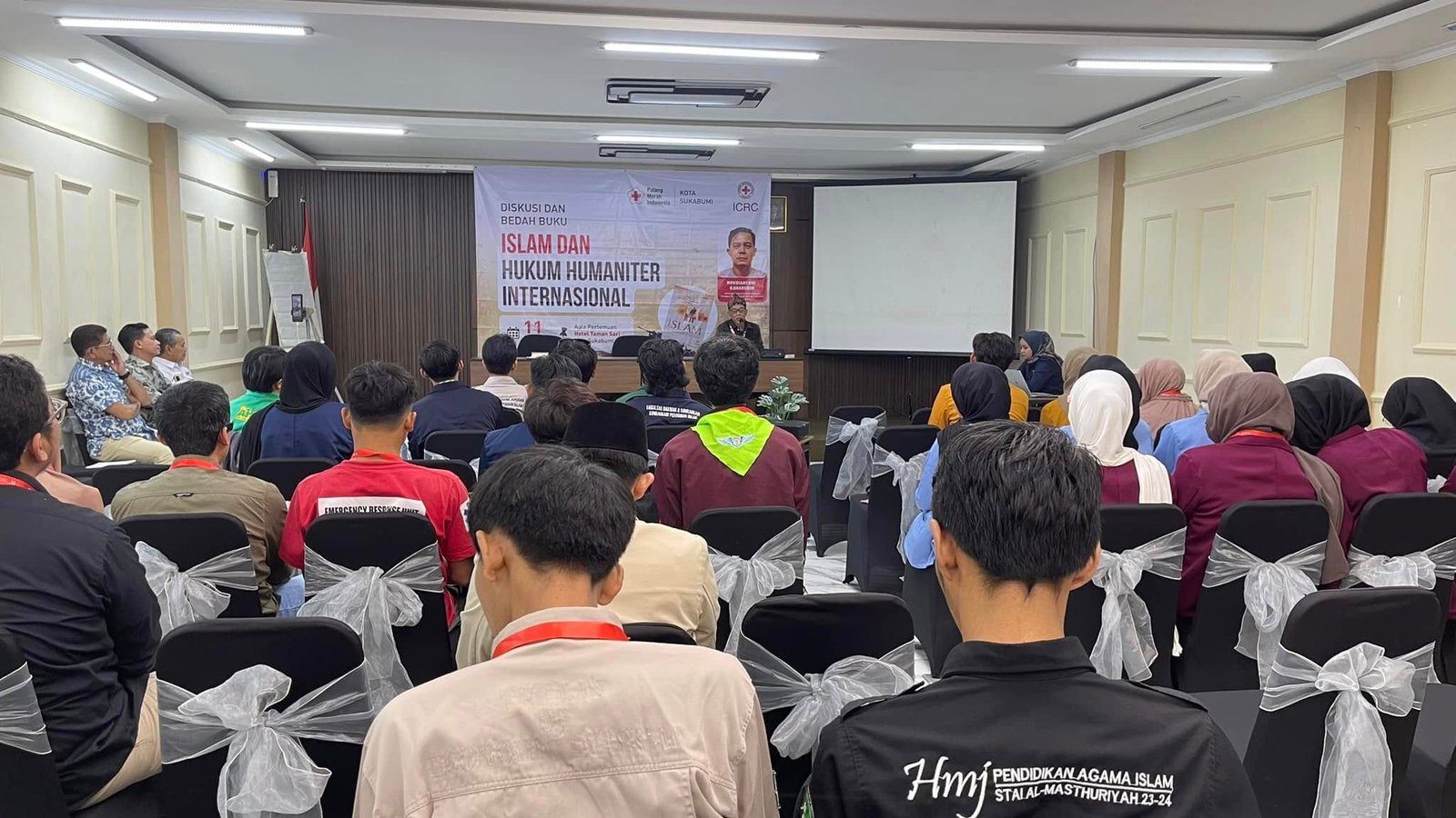 KOTA SUKABUMI- Palang Merah Indonesia (PMI) Kota Sukabumi bersama Komite Internasional Palang Merah (ICRC) menggelar bedah buku tentang Islam dan Hukum Humaniter Internasional (HHI) yang diikuti peserta dari perwakilan mahasiswa di se-wilayah Sukabumi, Jabar