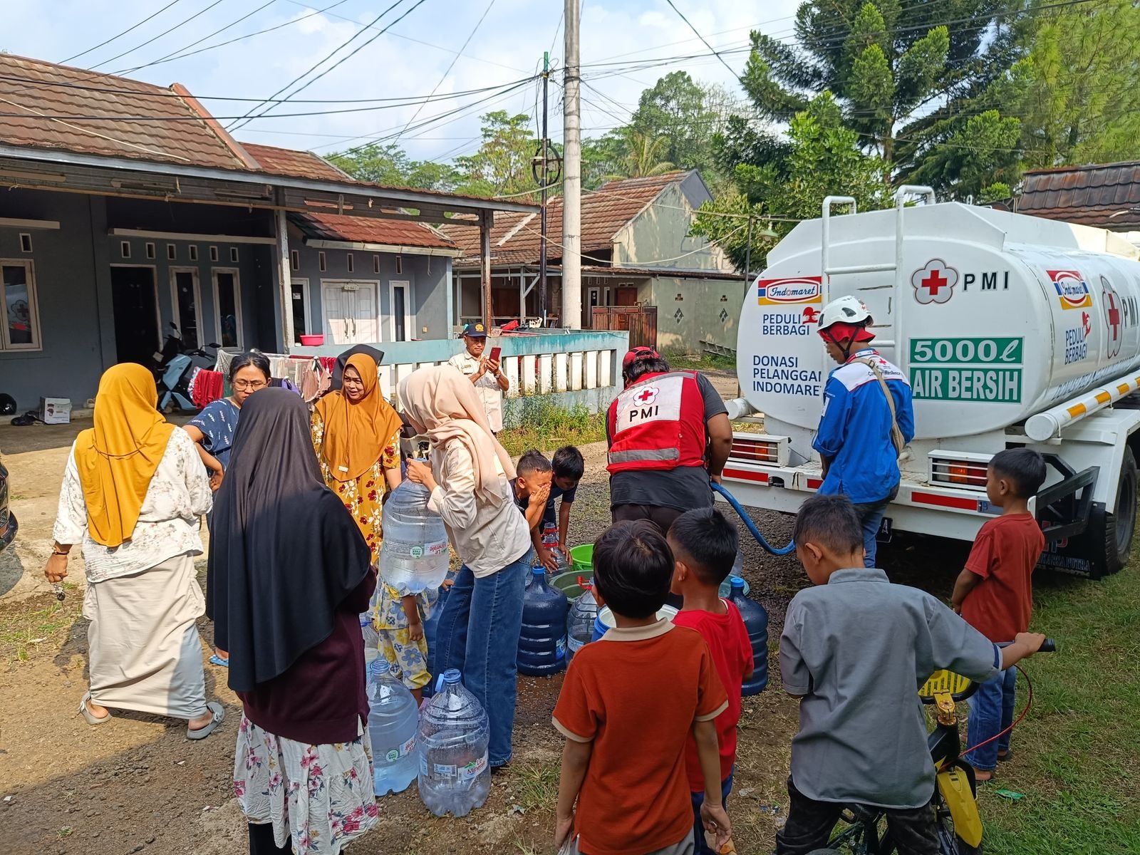 “PMI menerjunkan kendaraan tangki air bersih berkapasitas 5000 liter untuk mendistribusikan air bersih kepada 20 Kepala Keluarga (KK) atau sekitar 80 jiwa masyarakat yang terdampak saat ini,”ujar salahsatu Relawan PMI Kota Sukabumi, Rifan Zaenal Muslim