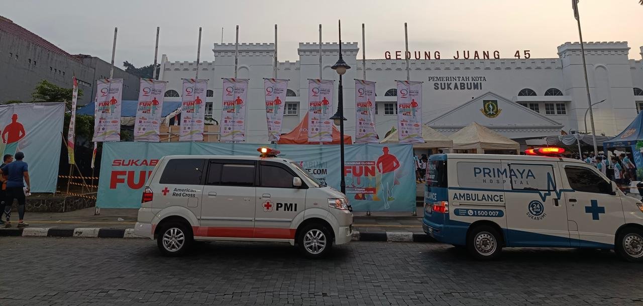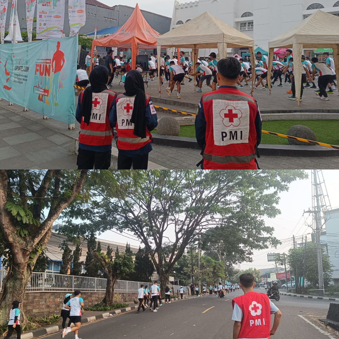KOTA SUKABUMI- Palang Merah Indonesia (PMI) Kota Sukabumi membuka layanan pertolongan pertama dan ambulans dalam gelaran Sukabumi Global FUN RUN 2025, yang berlangsung meriah di kawasan Gedung Juang 45, Minggu pagi (3/8/2025).