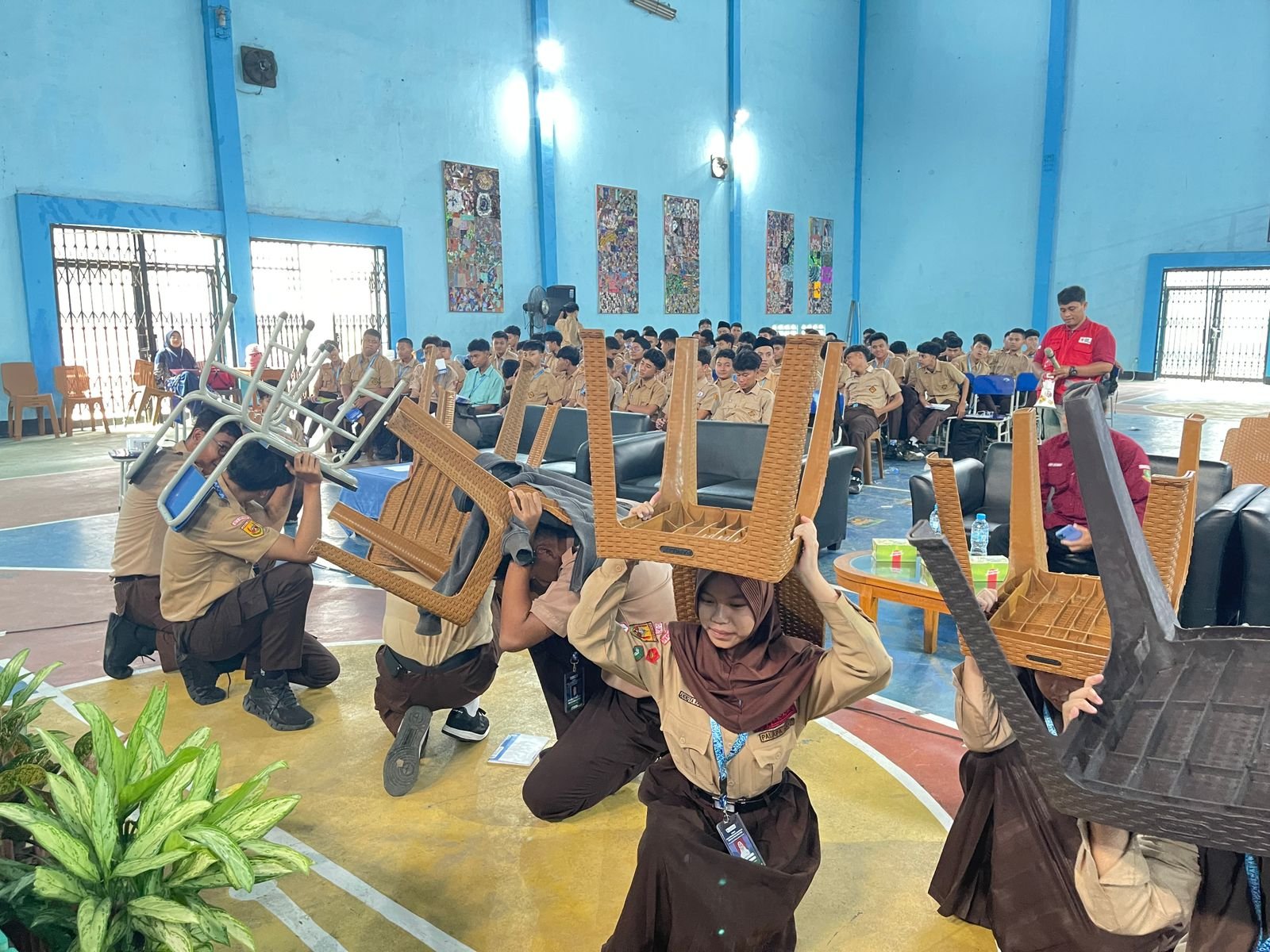 Para siswa juga diajak menyusun peta jalur evakuasi sekolah serta mengikuti simulasi evakuasi dan pertolongan korban. Momen ini tidak hanya menjadi pengalaman baru, tetapi juga memperkuat kesadaran akan pentingnya saling membantu dan tetap tenang saat menghadapi situasi darurat.